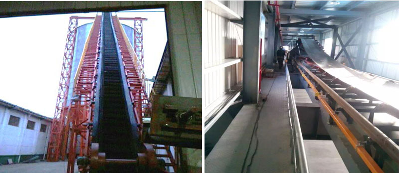 波狀擋邊輸送帶:在輸送機(jī)中起曳引和承載作用。波狀擋邊、橫隔板和基帶形成了輸送物料的"閘"形容器,從而實(shí)現(xiàn)大傾角輸送。