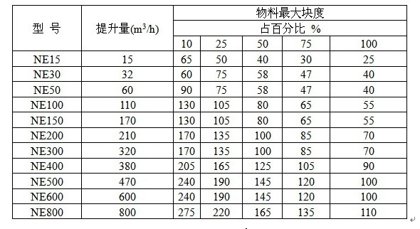 7、輸送能力大,該系列提升機具有NE15~NE800多種規(guī)格。提升量范圍為15~800m3/h。損耗少,噪聲低,壽命長。