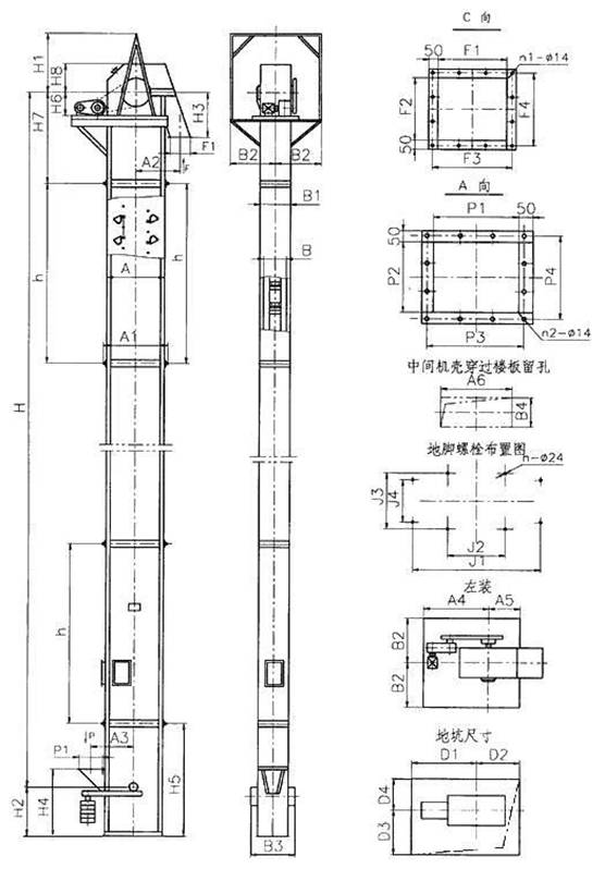 三、NE系列板鏈斗式提升機主要結(jié)構(gòu)及特點: