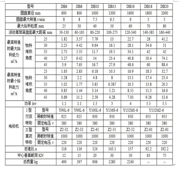 三、吊式圓盤給料機技術(shù)參數(shù):